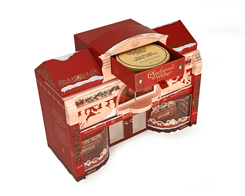 The countdown to Christmas commences with chocolate counters and shelves filled to bursting. Each day in December, a drawer opens with a sumptuous treat. On Christmas Day, a Milk Sea Salt Caramel Truffle gift box awaits.